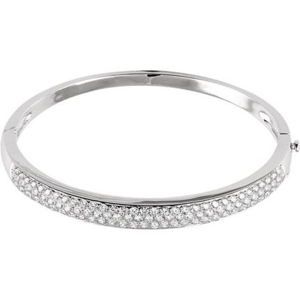 14K White 3 CTW Natural Diamond Pavé Bangle 7″ Bracelet