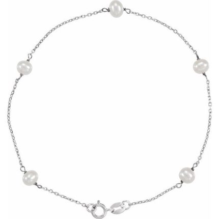 14K White Cultured White Freshwater Pearl 5-Station 7″ Bracelet