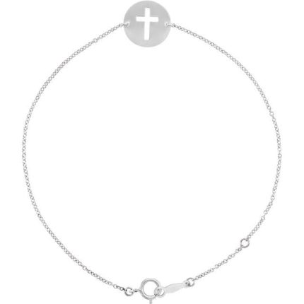 14K White Pierced Cross Disc 7-8″ Bracelet