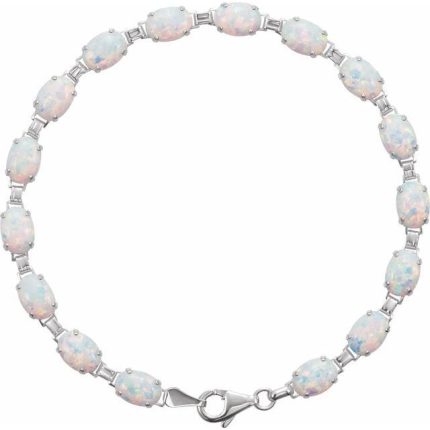 14K White Lab-Grown White Opal Line 7″ Bracelet