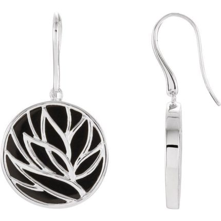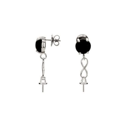 Sterling Silver Natural Black Onyx Semi-Set Earrings for 11-12 mm Pearl