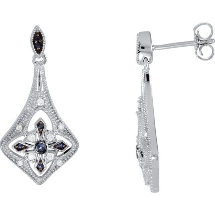 Sterling Silver Natural Blue Sapphire & 1/6 CTW Natural Diamond Earrings