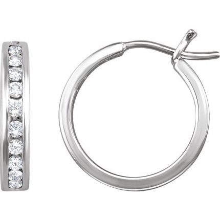 14K White 1/2 CTW Natural Diamond Channel-Set 16.5 mm Hoop Earrings