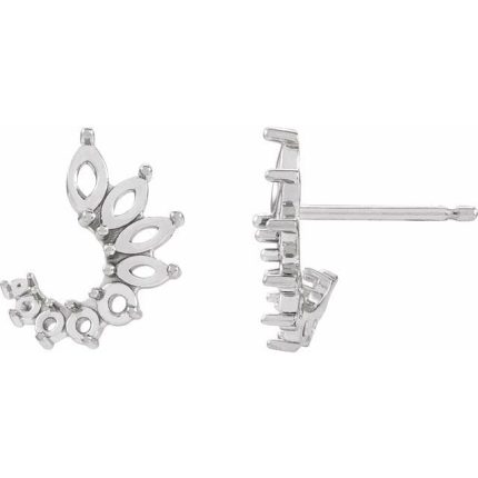 14K White 4×2 mm Marquise Accented Front-Back Left Earring Mounting