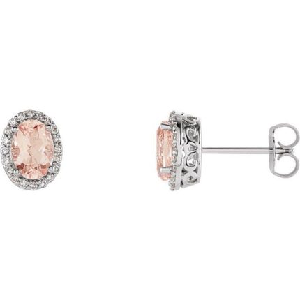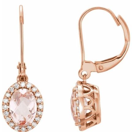 14K Rose Natural Pink Morganite & 1/8 CTW Natural Diamond Earrings