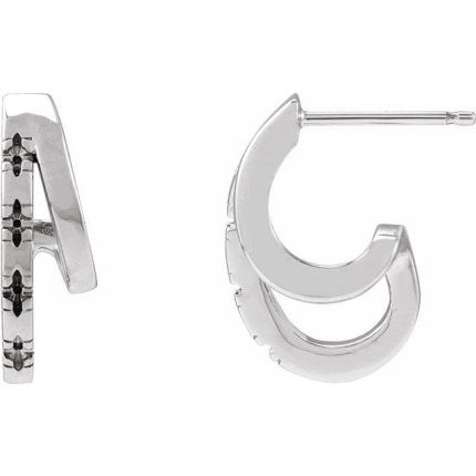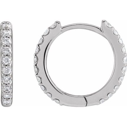 14K White 1.2 mm Round Accented Left Hoop Earrings