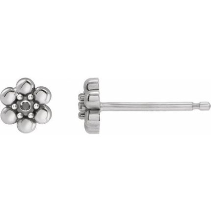 14K White 1.5 mm Round Beaded Daisy Earring Mounting