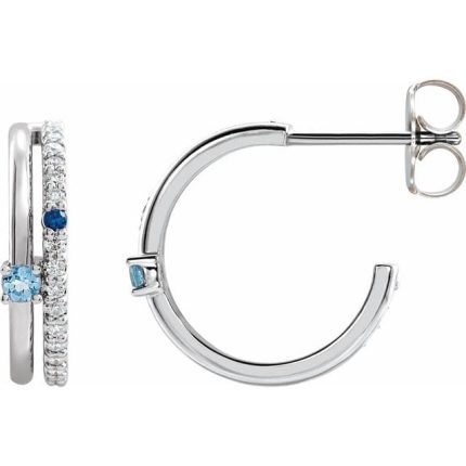 14K Yellow Natural Multi-Gemstone & 1/5 CTW Natural Diamond Hoop Earrings