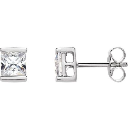 Sterling Silver 5×5 mm Square Imitation White Cubic Zirconia Earrings