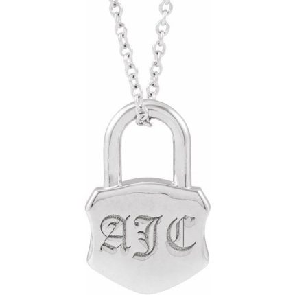14K White 15.3×10.1 mm Engravable Lock Pendant