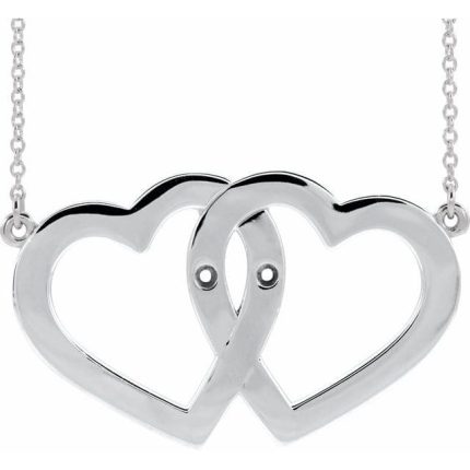 14K White 2-Stone Engravable Famly Heart 18″ Necklace Mounting