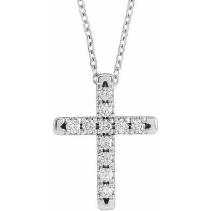 14K White 2 mm Round 16-Stone French-Set Cross Pendant Mounting