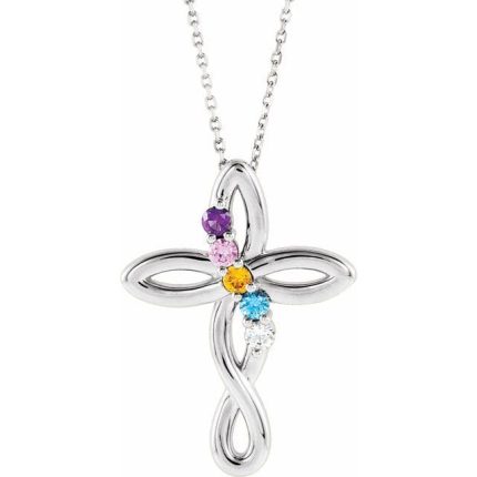 Sterling Silver 1-Stone Family Cross Pendant Mounting