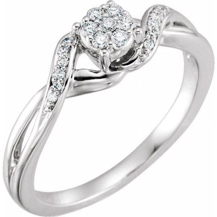 10K White 1/8 CTW Natural Diamond Cluster Promise Ring