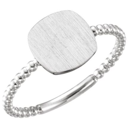 14K White Be Posh® Engravable Beaded Signet Ring