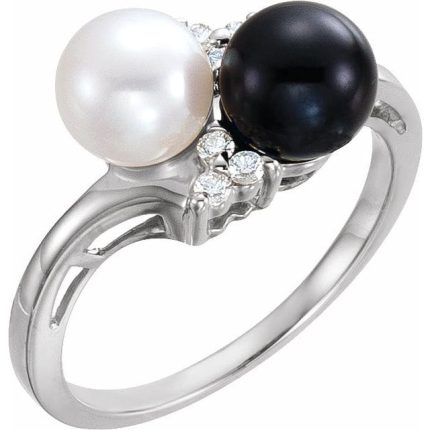 14K White Accented Ring Mounting for 6.5 mm Pearls