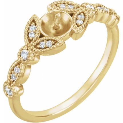 14K White Leaf Ring Mounting for 6-6.5 mm Pearl