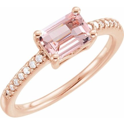 14K Rose Natural Pink Morganite & 1/10 CTW Natural Diamond Ring