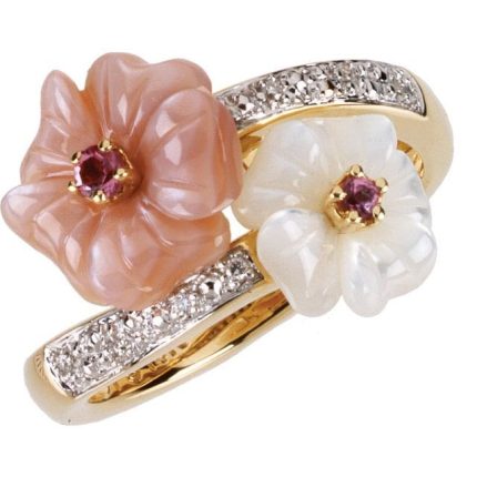14K Yellow Natural Pink Tourmaline, Natural Mother of Pearl & .04 CTW Natural Diamond RIng
