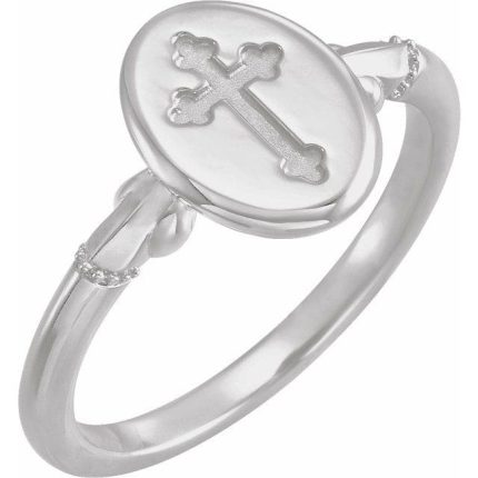 Sterling Silver 11.5×8.8 mm Oval Cross Signet Ring