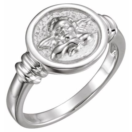 Sterling Silver 12.2 mm Cherub Angel Ring