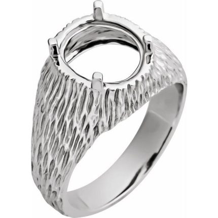 Sterling Silver 12×10 mm Emerald Ridged Cabochon Ring Mounting