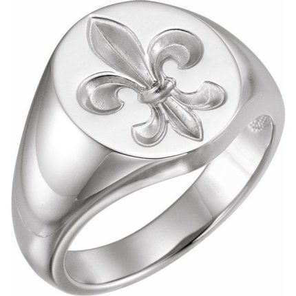 Sterling Silver 16×11 Oval Fleur-de-lis Signet Ring