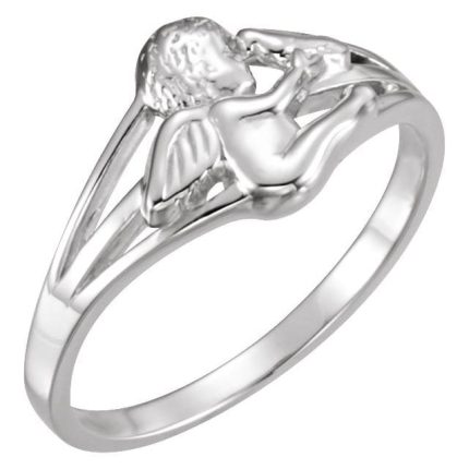 Sterling Silver 9.7 mm Cherub & Dove Ring