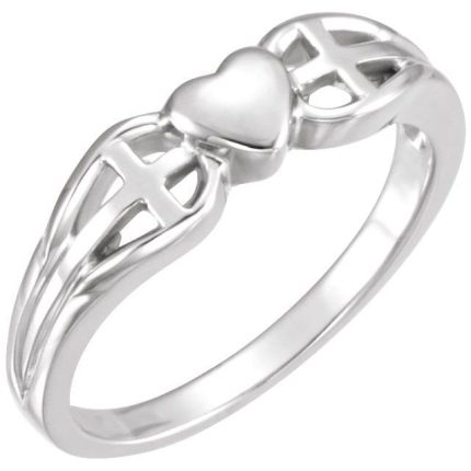 Sterling Silver 5.7 mm Heart & Cross Ring