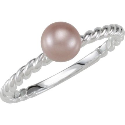 Sterling Silver Imitation Pink Pearl Rope Ring