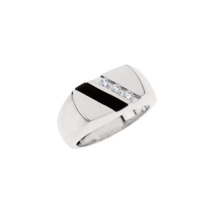 Sterling Silver Natural Black Onyx & 1/10 CTW Natural Diamond Ring