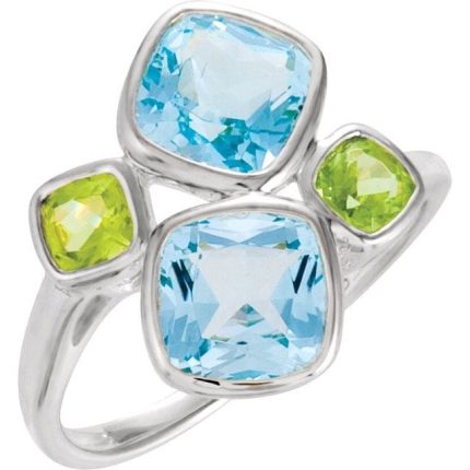 Sterling Silver Natural Sky Blue Topaz & Natural Peridot Ring
