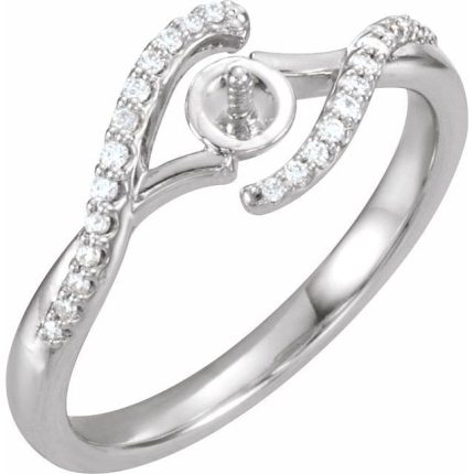 14K White 1/10 CTW Natural Diamond Semi-Set Ring for 5 mm Pearl