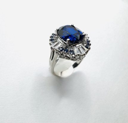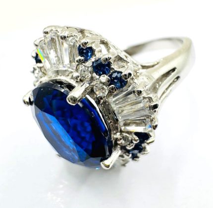 925 Sterling Silver Natural White & Blue Sapphire Ring