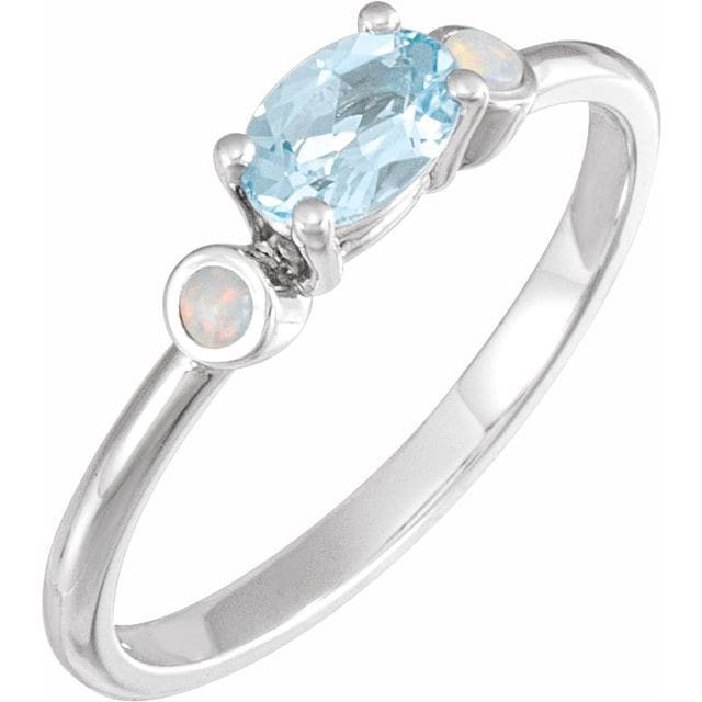 14K Rose 8×6 mm Natural Pink Morganite & Natural White Opal Ring