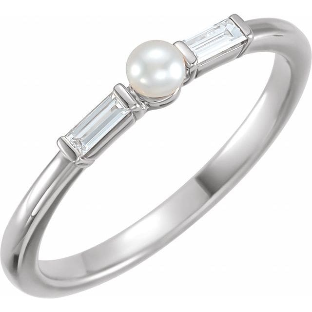 14K Rose Cultured White Seed Pearl & 1/8 CTW Natural Diamond Ring