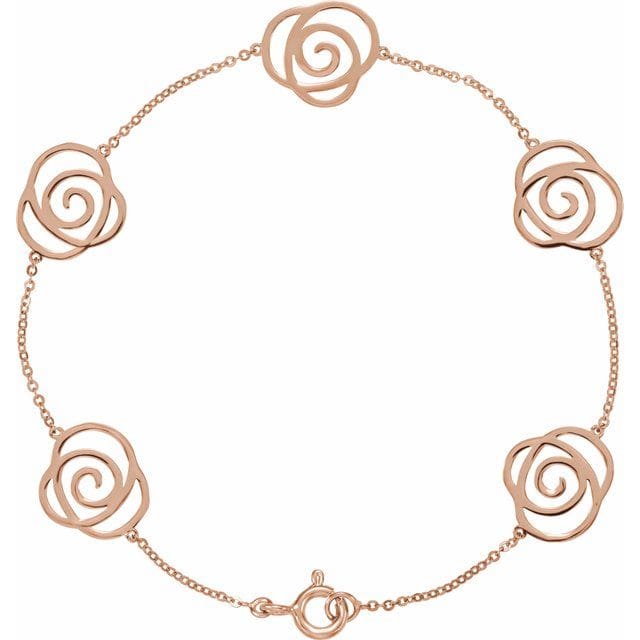 14K Rose Floral Station 7″ Bracelet