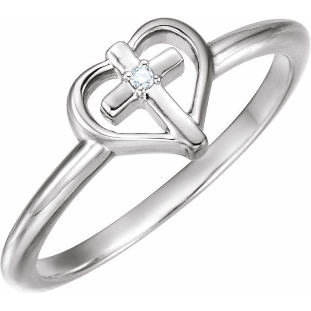 14K White .01 CT Natural Diamond Cross & Heart Ring