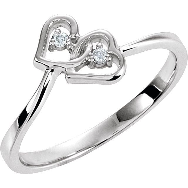 14K White .02 CTW Natural Diamond Double Heart Ring
