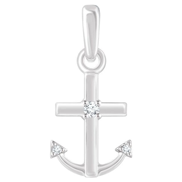 14K White .03 CTW Natural Diamond Anchor Pendant