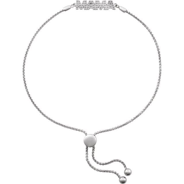 14K White 1/10 CTW Natural Diamond Mama Bolo 9 1/2″ Bracelet