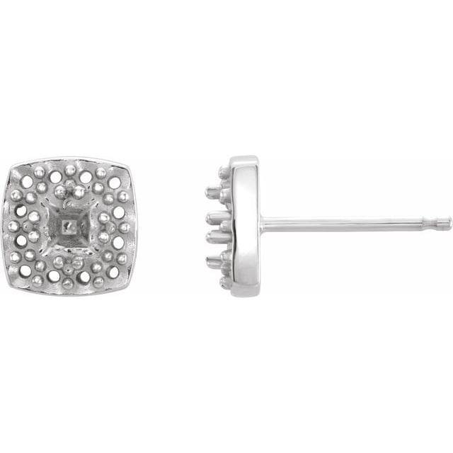 14K White 5 mm Trillion 3-Prong Halo-Style Earring Mounting