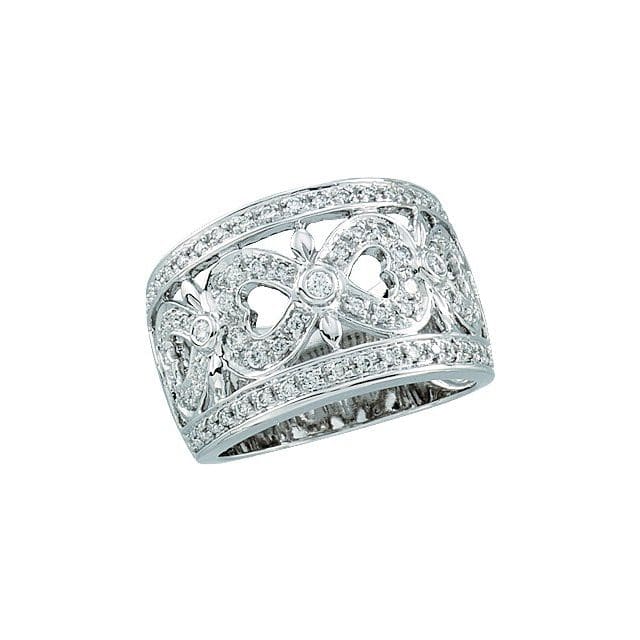 14K White .02 CTW Natural Diamond Double Heart Ring