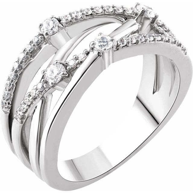 14K White 1/3 CTW Natural Diamond Criss-Cross Ring