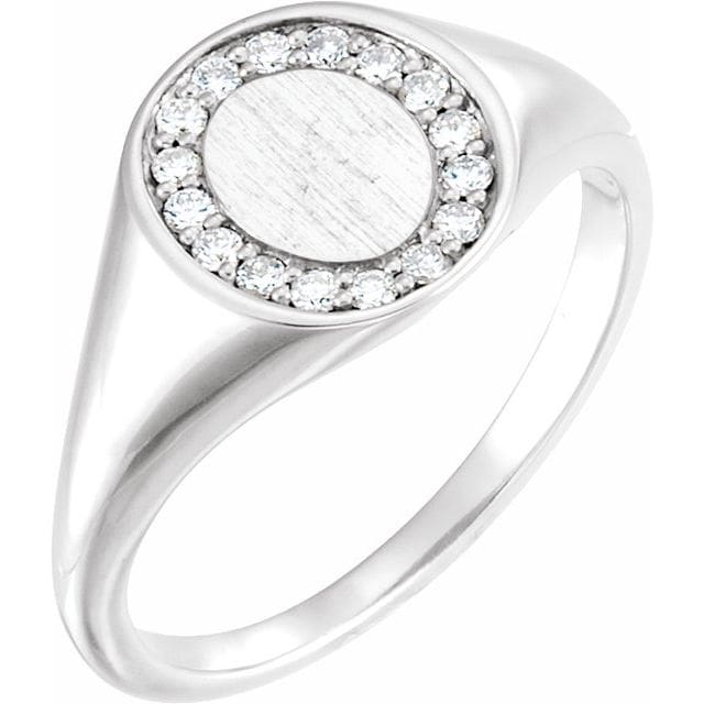 14K White 1.3 mm Round Halo-Style Signet Ring Mounting