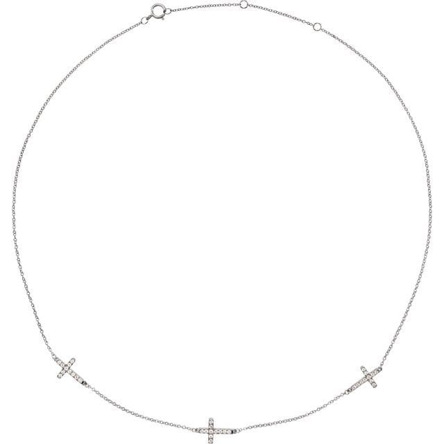 14K White 1/4 CTW Natural Diamond 3-Station Cross 16-18” Necklace