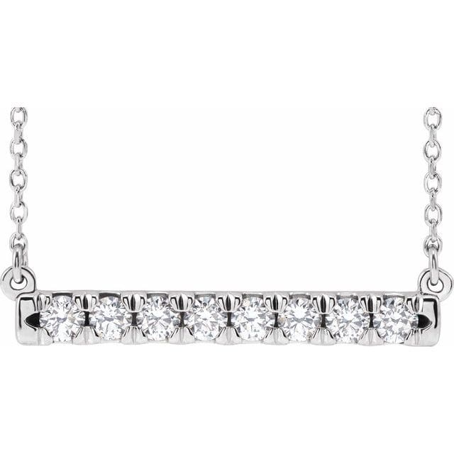 14K White 1.7 mm Round French-Set Bar Necklace Center