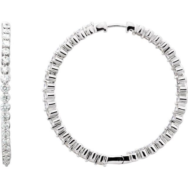 14K White 1 CTW Natural Diamond Inside-Outside Hinged 32.5 mm Hoop Earrings