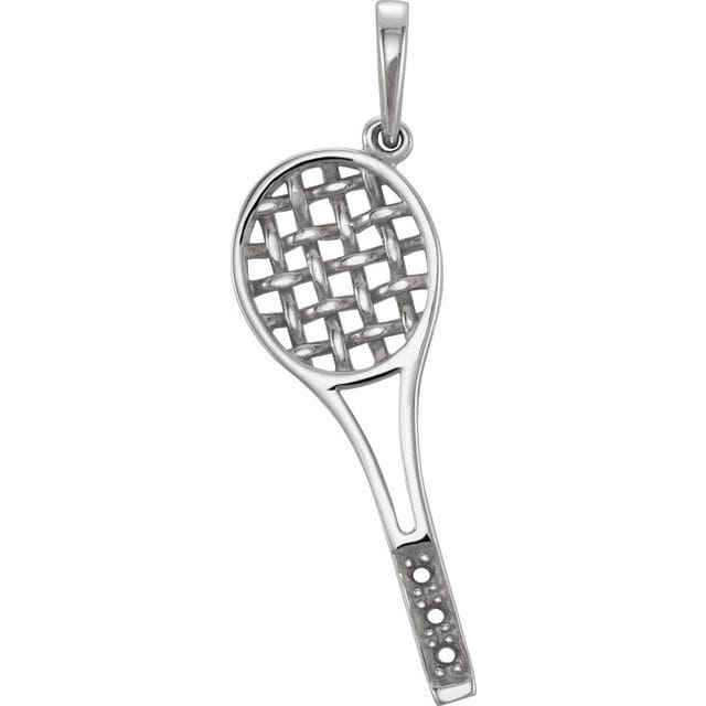 14K White 1 mm Round Tennis Racket Pendant Mounting