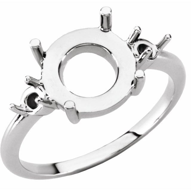14K White 10 mm Round Cabochon Three-Stone Ring Mounting